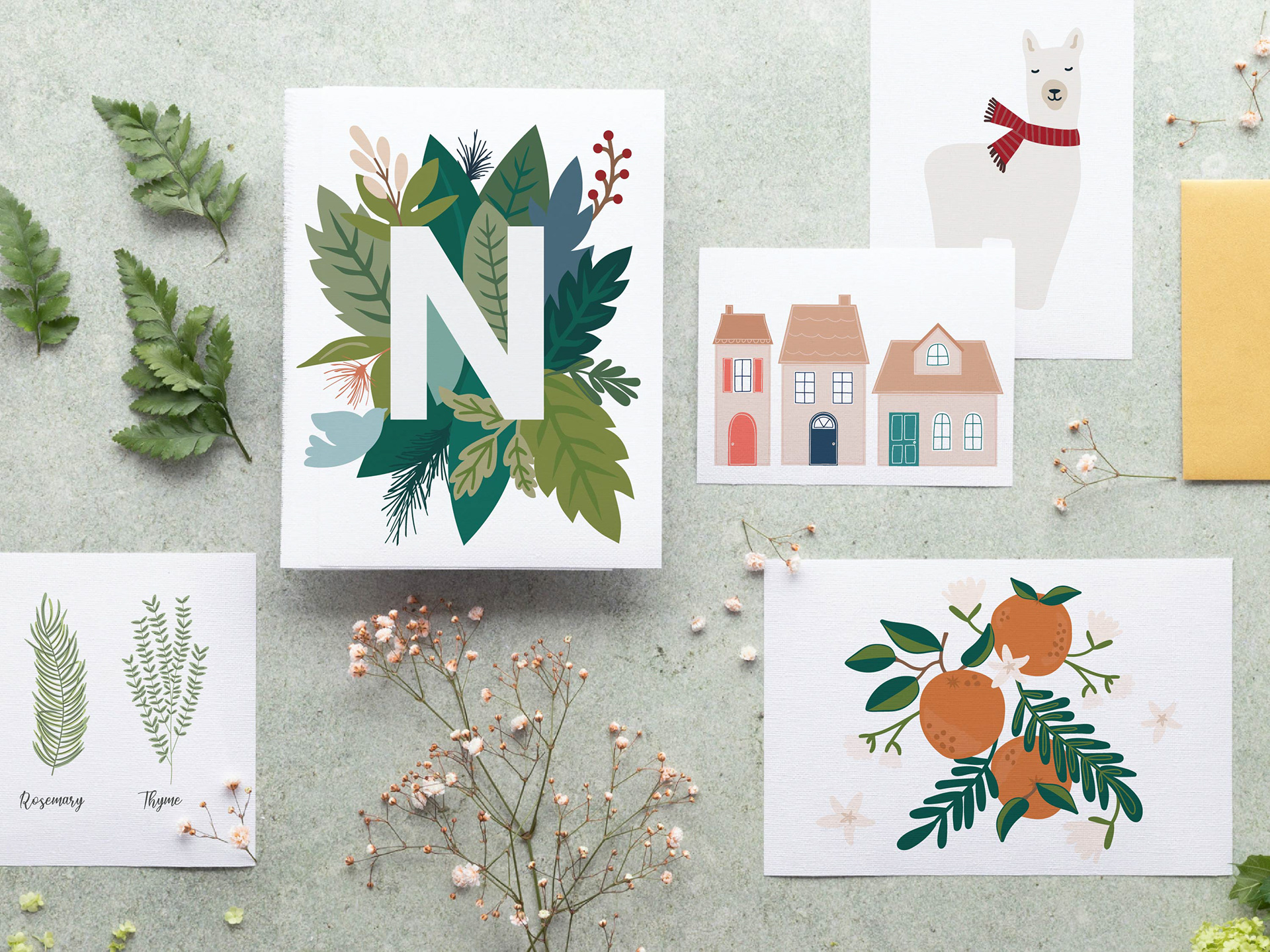 Unique illustrations are key to making your products stand out. We create custom illustrations for a variety of needs, from hand-drawn designs for stamps to embroidery, stationery, and more.